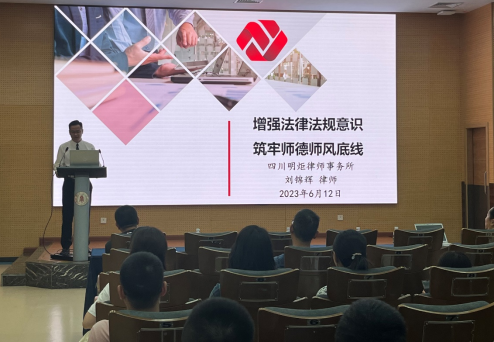 党总支在江安校区多学科交叉研究创新大楼A103报告厅开展师德师风建设专题学习。本次学习邀请四川明炬律师事务所专职律师刘锦辉作专题报告,学院副院长谢凌志及学院教职工代表30余人参会。本次学习由学院党员代表岑望来同志主持。