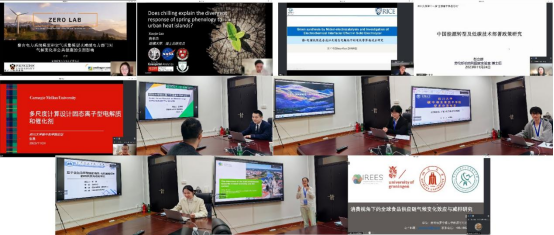 优秀青年学者代表从减污降碳技术、二氧化碳捕集利用技术和资源碳中和技术等方面,基于自己的科研方向和研究成果进行了精彩的学术报告。美国哈佛大学的高孝杰博士后、普林斯顿大学的罗茜博士后、莱斯大学的张守坤博士后、达特茅斯学院张磊博士后、劳伦斯伯克利国家实验室彭立群博士后分别以“冷激效应对城市植被春季物候的影响”“整合电力系统模型与空气质量模型以减缓电力部门对气候变化和公共健康的影响”“镍-电催化绿色合成以及固态电解池中的电化学界面效应研究”“多尺度计算设计固态离子型电解质和催化剂”“中国能源转型及低碳技术部署政策研究”为题作了报告。日本东京农工大学的彭明明助理教授分享了在“分子筛多孔材料与生物质能源”领域的研究成果,京都大学的汪家琦博士后讲解了在“热解辅助下的木质素催化降解”方面的科研进展。德国德累斯顿工业大学的张宁博士围绕“The transition of the built environment towards circular economy and low carbon”分享科研心得和体会。荷兰格罗宁根大学的李彦显博士、瓦赫宁根大学的谌娜博士分别阐述了各自在“全球食品供应链气候变化效应与减排研究”“基于多源遥感数据的森林扰动与生长监测”等方面的研究。同济大学姜一琳博士详细介绍了“基于含氮杂环羧酸的有机-无机晶格框架的构筑及光催化研究”。随后,与会人员进行了充分地交流、讨论。