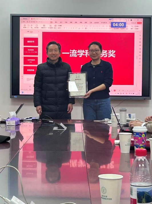 学院教学科研岗教师代表15人,8个团队分别从人才培养、科研创新、公共服务等方面总结2025年工作亮点,并提出2026年工作目标。学院领导班子及资深教师代表学院对过去一年在立德树人、学科建设、科学研究、师资队伍建设等方面有突出贡献的教职工颁发奖状。