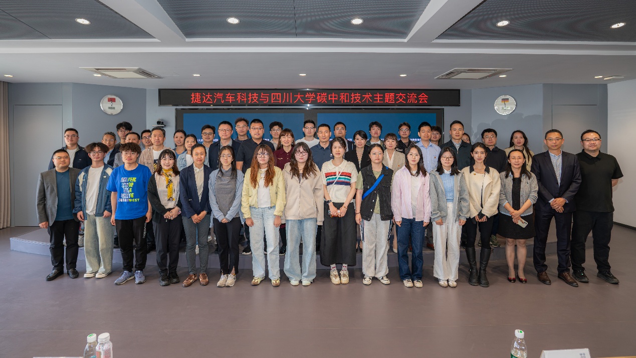 总结环节,学院党总支书记、常务副院长江霞教授表示,学院将发挥学科与科研优势,为捷达科技绿色转型提供智力与技术支撑,助力企业提升低碳核心竞争力,服务地方汽车产业高质量发展。捷达科技高启政副总经理指出,此次交流会为校企合作奠定坚实基础,捷达科技将以交流为契机,深化与川大碳中和学院协同,加快低碳技术应用与创新,以实际行动践行“双碳”使命,推动汽车产业绿色可持续发展。
