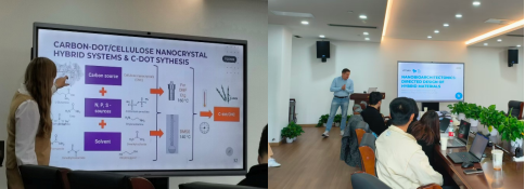 与会师生围绕以可再生碳源等天然聚合物为原料合成碳点材料、纳米纤维素等高值化低碳材料的技术路径,及其在清洁能源开发、污染治理等碳中和关联领域的可持续应用主题展开热烈讨论。本次论坛既为师生搭建了多学科融合交叉的学术交流桥梁,拓宽了其在双碳目标下的研究视野,也为哔咔漫画